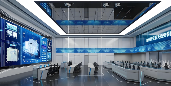 低空融合飞行指挥中心,指挥大厅以超高清无缝拼接LED大屏为核心,集成分布式坐席协同、跨域视频会议(全景/特写双摄接入)及空域三维态势电子沙盘系统,集运营、调度、会议讨论系统、大屏幕监控管理等功能为一体,构建全域感知、高效调度、精准决策的智慧指挥中枢。