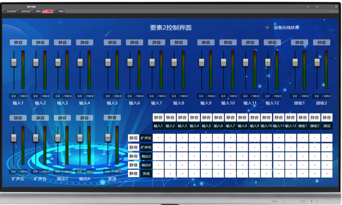 系统平台还支持配套I/O周边设备,如墙面控制器、呼叫站、有线触摸屏等。在大型的综合系统中可依照不同的使用需求通过不同的I/O设备来完成不同的应用。应用环境可包括主题乐园、机场、火车站、大型商超。系统内建Lua脚本,用标准C语言即可编写,设计目的是为了嵌入应用程序中,从而为应用程序提供灵活的扩展和定制功能。结合主机的GPIO以及RS232/RS485接口实现更多场景的应用。系统具备全中文操作界面,控制操作界面,简单、直观,在控制软件中,通过简单的鼠标操作,便可以完成对整个音频系统 中各项参数、预案的设置、调用,用户只需要关心最终的效果,而无须关心中间的控制过程、调用过程等繁杂的工作。图形控制界面是本系统的核心之一,信号所见即所得,通过在计算机上安装软件即可实现,还可以通过无线触摸屏实现更为便捷的无线控制。同样还支持web控制,以应对不同计算机操作系统的兼容问题。